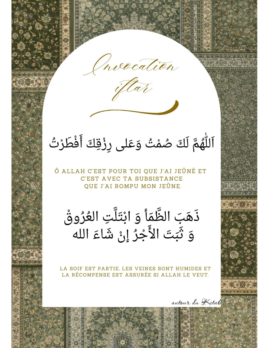 Découvrez notre carte du'a , spécialement conçue pour accompagner votre rupture du jeûne pendant le mois sacré de Ramadan. Cette élégante carte, dans l'esprit raffiné d'Autour du Kitab,
